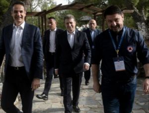 Τον πρωθυπουργό συνόδευε ο υπουργός Προστασίας του Πολίτης, Μιχάλης Χρυσοχοΐδης και ο υφυπουργός Πολιτικής Προστασίας και Διαχείρισης Κρίσεων, Νίκος Χαρδαλιάς.