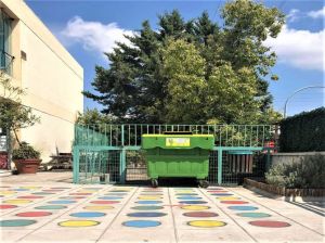 • 17 μεταλλικοί κάδοι 1100 lt , πράσινου χρώματος με κίτρινο καπάκι, στον εξωτερικό χώρο των σχολείων και
