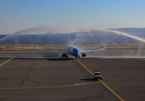 - Με αψίδες νερού, μουσικές, τραγούδια, χορούς και κεράσματα τους υποδεχθήκαμε.