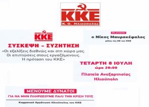 ΚΟ Ηλιούπολης Συζήτηση: Οι διεθνείς εξελίξεις Οι επιπτώσεις στους εργαζόμενους και η θέση του ΚΚΕ Εντός των τειχών 05 Ιουλίου 2020 Οι Κομματικές Οργανώσεις Ηλιούπολης του ΚΚΕ θα πραγματοποιήσουν ανοικτή Σύσκεψη – Συζήτηση, την Τετάρτη 8 Ιούλη 2020 ώρα 20:00 στην Πλατεία Ανεξαρτησίας, με ομιλητή τον Νίκο Μαυροκέφαλο (μέλος της Κεντρικής Επιτροπής του ΚΚΕ). Θέμα της συζήτησης: «Οι εξελίξεις διεθνώς και στη χώρα μας και οι επιπτώσεις στους εργαζόμενους. Η πρόταση του ΚΚΕ» πηγή Πλατεία Ανεξαρτησίας Νίκος Μαυροκέφαλος μέλος της Κεντρικής Επιτροπής του ΚΚΕ Κομματικές Οργανώσεις Ηλιούπολης του ΚΚΕ Ηλιούπολη Ηλιούπολη για όλους ilioupoli www.ilioupoligiaolous.gr Προβλήθηκε 819 φορές Δείτε Επίσης: Εντός των τειχών Δείτε τα Όλα Σύλλογος Εκπαιδευτικών Π.Ε. Ηλιούπολης "Μ. ΠΑΠΑΜΑΥΡΟΣ'': ΑΝΑΦΟΡΙΚΑ ΜΕ ΤΑ ΕΡΓΑΤΙΚΑ ΑΤΥΧΗΜΑΤΑ ΠΟΥ ΓΙΝΟΝΤΑΙ ΣΤΑ ΣΧΟΛΕΙΑ ΜΑΣ 06 Φεβρουαρίου 2026 Πριν λίγες μέρες συνέβη ένα εργατικό ατύχημα σε συναδέλφισσα που εργάζεται στο 3ο ΔΣ Ηλιούπολης Συνελήφθη 20χρονος για 13 ληστείες σε βάρος ανηλίκων στην Αττική - Αναζητούνται 2 συνεργοί του 01 Φεβρουαρίου 2026 Η συμμορία δρούσε στις περιοχές των Αγίων Αναργύρων, της Ηλιούπολης, του Ελληνικού, του Αγίου Δημητρίου, της Αργυρούπολης, του Ιλίου και των Αχαρνών Ισοπαλία για ΔΙΑΝΑ, ΧΑΡΑΥΓΙΑΚΟ και ΦΩΣΤΗΡΑ ΗΛΙΟΥΠΟΛΗΣ 01 Φεβρουαρίου 2026 3 ΙΣΟΠΑΛΙΕΣ 18η αγωνιστική για ΔΙΑΝΑ, ΧΑΡΑΥΓΙΑΚΟ και 17η αγωνιστική για ΦΩΣΤΗΡΑ ΗΛΙΟΥΠΟΛΗΣ 30 Ιανουαρίου 2026 Σάββατο 31.01.2026 και ώρα 03.00 μ.μ. και Κυριακή 01.02.2026 και ώρα 03.00 μ.μ. ΙΣΟΠΑΛΙΑ ΓΙΑ ΤΗΝ ΗΛΙΟΥΠΟΛΗ (18η ΑΓΩΝΙΣΤΙΚΗ) 24 Ιανουαρίου 2026 ΚΥΡΙΑΚΗ 25.01.2026 ΚΑΙ ΩΡΑ 03.00 Μ.Μ. Νίκη για τον ΧΑΡΑΥΓΙΑΚΟ, ισοπαλία για την ΔΙΑΝΑ και νίκη για τον ΦΩΣΤΗΡΑ ΗΛΙΟΥΠΟΛΗΣ 24 Ιανουαρίου 2026 ΣΑΒΒΑΤΟ 24.01.2026 ΚΑΙ ΩΡΑ 03.00 Μ.Μ. ΚΑΛΛΙΘΕΑ - ΗΛΙΟΥΠΟΛΗ (18η αγωνιστική) 23 Ιανουαρίου 2026 ΚΥΡΙΑΚΗ 25.01.2026 ΚΑΙ ΩΡΑ 03.00 Μ.Μ. 17η αγωνιστική για ΔΙΑΝΑ, ΧΑΡΑΥΓΙΑΚΟ και 16η αγωνιστική για ΦΩΣΤΗΡΑ ΗΛΙΟΥΠΟΛΗΣ 23 Ιανουαρίου 2026 Σάββατο 24.01.2026 και ώρα 03.00 μ.μ.