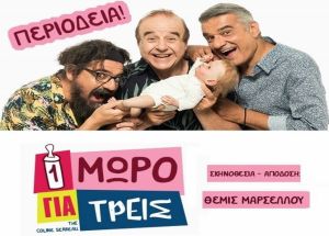 Με τον Παύλο Χαϊκάλη, τον Κώστα Αποστολάκη και τον Γιάννη Δρακόπουλο στους πρωταγωνιστικούς ρόλους, το «Ένα μωρό για τρεις» έρχεται να δροσίσει τα καλοκαιρινά βράδια προσφέροντας μοναδικές στιγμές γέλιου διασκέδασης, αλλά και συγκίνησης.