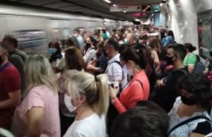 Στην αποβάθρα στοιβαγμένοι οι πολίτες που κατευθύνονται στις δουλειές τους. Μέσος όρος άφιξης του επόμενου συρμού 10 λεπτά.