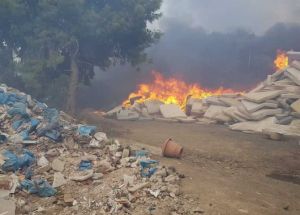 Στο σημείο από όπου ξεκίνησε η φωτιά υπήρχε δεξαμενή καυσίμων, στρατόπεδο, καταφύγιο αδέσποτων και χώρος συγκέντρωσης ογκωδών αντικειμένων του δήμου. Η φωτιά έχει ελεγχθεί.
