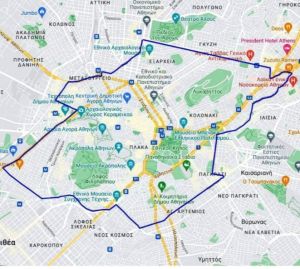 Δακτύλιος στο κέντρο της Αθήνας που περικλείεται από το δακτύλιο που σχηματίζουν οι λεωφόροι και οδοί: