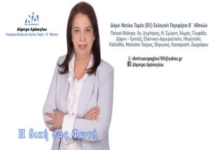 Κοντεύουν οι επικείμενες Βουλευτικές εκλογές και είμαι υποψήφια στο ΝΟΤΙΟ ΤΟΜΕΑ της Β' Αθηνών της Β3 Εκλογικής περιφέρειας ( Παλαιό Φάληρο, Αγ. Δημήτριος, Νέα Σμύρνη, Άλιμος, Γλυφάδα, Δάφνη-Υμηττός, Ελληνικό - Αργυρούπολη, Ηλιούπολη, Καλλιθέα, Μοσχάτο-Ταύρος , Βύρωνας, Καισαριανή, Ζωγράφου).
