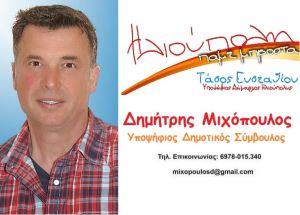 ''Ο Δημήτρης Μιχόπουλος είναι ένα βασικό στέλεχος του συνδυασμού μας, του "Ηλιούπολη Πάμε Μπροστά", από την ίδρυση του.