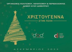 Το πνεύμα των Χριστουγέννων φωλιάζει στην καρδιά του Αγίου Δημητρίου και οι γιορτινές εκδηλώσεις της πόλης μας θα το κάνουν να φωλιάσει στην καρδιά κάθε συμπολίτη μας.