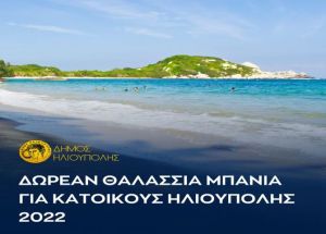 Ο Δήμος Ηλιούπολης στα πλαίσια της κοινωνικής πολιτικής του, διοργανώνει και φέτος το καλοκαίρι δωρεάν θαλάσσια μπάνια, για τους κατοίκους της πόλης μας.