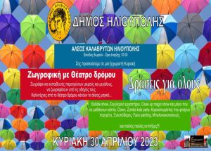 Ο Δήμος Ηλιούπολης σάς προσκαλεί την Κυριακή 30 Απριλίου 2023 στις 10 π.μ. σε ένα μοναδικό Event. Μαθήματα ζωγραφικής (και όχι μόνο) από επαγγελματίες του είδους, συνδυασμένα με δράσεις καλλιτεχνών από το θέατρο δρόμου, θα εντυπωσιάσουν όσους θα βρεθούν στο Άλσος Καλαβρύτων της Ηλιούπολης (πίσω από την Πλατεία Κανάρια).