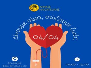 O Δήμος Ηλιούπολης συνεχίζοντας με συνέπεια το κοινωνικό του έργο, διοργανώνει Έκτακτη Εθελοντική Αιμοδοσία σε συνεργασία με το Κέντρο Αιμοδοσίας Γενικού Αντικαρκινικού - Ογκολογικού Νοσοκομείου Αθηνών Άγιος Σάββας.