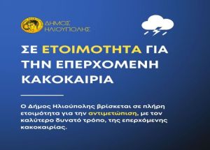 Ο Δήμος Ηλιούπολης βρίσκεται σε πλήρη ετοιμότητα για την αντιμετώπιση, με τον καλύτερο δυνατό τρόπο, της επερχόμενης κακοκαιρίας.