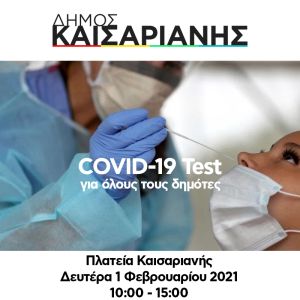 θα διεξαχθούν Covid-19 test από κλιμάκιο του ΕΟΔΥ για τους δημότες Καισαριανής και των γύρω Δήμων.