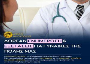 Η Κοινωνική Υπηρεσία του Δήμου Ηλιούπολης στο πλαίσιο της έγκαιρης διάγνωσης αλλά και πρόληψης, ξεκινά συνεργασία με τον χειρουργό – ογκολόγο Δρ. ΚΕΛΕΣΗ ΝΙΚΟΛΑΟ με σκοπό την ενημέρωση αλλά και την εξέταση του γυναικείου πληθυσμού της πόλης μας.