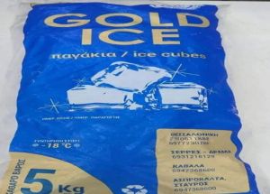 Παγάκια συσκευασμένα GOLD ICE, σε κλειστή πλαστική συσκευασία 5 κιλών, με ημερομηνία παραγωγής 24-09-2020 και ημερομηνία λήξης 24-10-2021, το οποίο παράγεται από την επιχείρηση ΤΣΕΡΤΣΕΝΕΣ ΓΕΩ. ΕΥΑΓΓΕΛΟΣ, ΑΣΣΗΡΟΣ (ΔΗΜΟΥ ΛΑΓΚΑΔΑ) ΘΕΣΣΑΛΟΝΙΚΗΣ και διανέμεται από την επιχείρηση ΠΑΠΑΖΟΓΛΟΥ ΔΗΜ. ΖΗΝΟΒΙΑ, Περιοχή Παραλίμνιο Σερρών.