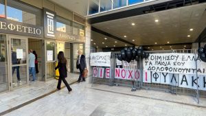 Στα κάγκελα του Εφετείου έχουν αναρτηθεί πανό που γράφουν «οι ένοχοι φυλακή» και «κοιμήσου Ελλάδα, τα παιδιά σου δολοφονούνται», καθώς και μαύρα μπαλόνια.