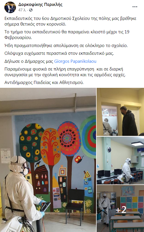 Ολόψυχα ευχόμαστε περαστικά στον εκπαιδευτικό μας''. Δήλωσε ο Δήμαρχος μας Γιώργος Παπανικολάου