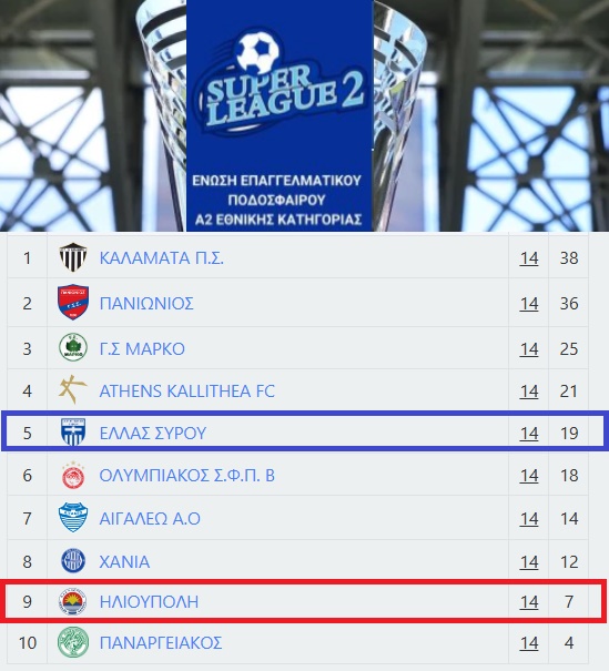 Την Κυριακή 21.12.2025 και ώρα 03.00 μ.μ. η ομάδα της ΗΛΙΟΥΠΟΛΗΣ αντιμετωπίζει εκτός εδρας την ΕΛΛΑΣ ΣΥΡΟΥ στα πλαίσια της 15ης αγωνιστικής της Super League 2.