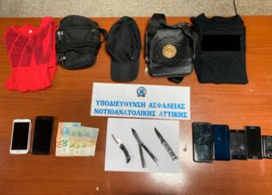 Κατόπιν έρευνας που πραγματοποιήθηκε, στην κατοχή τους βρέθηκαν και κατασχέθηκαν αναδιπλούμενοι σουγιάδες και πεταλούδα και στις οικίες τους αφαιρεθέντα κινητά τηλέφωνα και ρουχισμός που φορούσαν κατά τη διάπραξη των ληστειών.