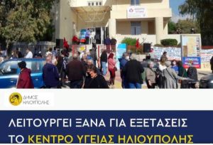 Μετά την καθολική διαμαρτυρία της κοινωνίας, επανέρχεται η κανονική λειτουργία του Κέντρου Υγείας Ηλιούπολης για κλείσιμο ραντεβού και εξετάσεις ασθενών, παράλληλα με την όλη διαδικασία εμβολιασμών.