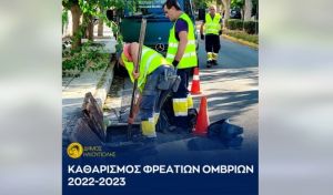 Σε εξέλιξη βρίσκεται από εξειδικευμένο τεχνικό συνεργείο οι εργασίες καθαρισμού των φρεατίων συλλογής ομβρίων υδάτων στο οδικό δίκτυο του Δήμου μας, που εκτελούνται έγκαιρα από τις αρχές Σεπτεμβρίου και συνεχίζονται στην διάρκεια ενός έτους, ανάλογα με τις επικρατούσες συνθήκες και τις ανάγκες της πόλης μας.