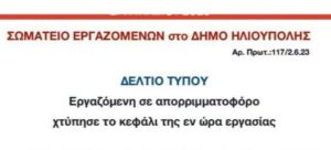 Και αυτό το ατύχημα έρχεται να προστεθεί στα εκατοντάδες καθημερινά εργατικά ατυχήματα που έχουμε στον κλάδο -όπως και στο δήμο μας-, αναδεικνύοντας για ακόμα μια φορά την επικινδυνότητα της συγκεκριμένης ειδικότητας.