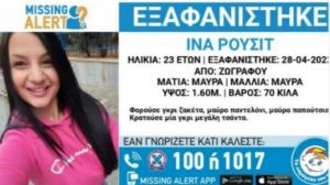 «Στις 28/04/2023, πρωινές ώρες, η Ίνα Ρουσίτ, 23 ετών εξαφανίστηκε από την περιοχή Ζωγράφου, στην Αθήνα. Το “Χαμόγελο του Παιδιού” ενημερώθηκε για την εξαφάνιση της Ίνα Ρουσίτ και προχώρησε στη δημοσιοποίηση των στοιχείων της ενήλικης, κατόπιν αιτήματος της οικογένειας της, καθώς συντρέχουν λόγοι οι οποίοι θέτουν τη ζωή της σε κίνδυνο.
