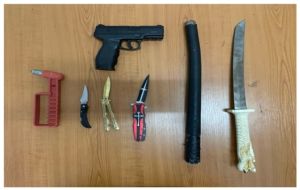 αεροβόλο όπλο, ρόπαλο,-3- πεταλούδες-σουγιάδες, θραύστης τζαμιών,-2- οχήματα, μοτοσυκλέτα,-7- κινητά τηλέφωνα καιτο χρηματικό ποσό των (70) ευρώ