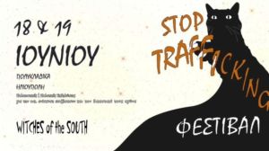 Διήμερο φεμινιστικό φεστιβάλ ενάντια στο trafficking και την αστυνομική βία διοργανώνει η οργάνωση Witches of the South το Σάββατο 18 και την Κυριακή 19 Ιουνίου στα Πολυκλαδικά Λύκεια της Ηλιούπολης με στόχο την συγκέντρωση χρημάτων για την κάλυψη των δικαστικών εξόδων και τη διευκόλυνση της κοινωνικής επανένταξης της Ε., θύματος trafficking με δράστη αστυνομικό στην περιοχή.