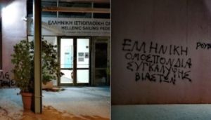 Παρέμβαση από μέλη του Ρουβίκωνα, με αφορμή την υπόθεση της Σοφίας Μπεκατώρου και τους χειρισμούς της ομοσπονδίας, όπου έγραψαν συνθήματα για τον πρόεδρο της και ζητούν παραιτήσεις, το βράδυ της Πέμπτης στα γραφεία της Ελληνικής Ιστιοπλοΐκής Ομοσπονδίας