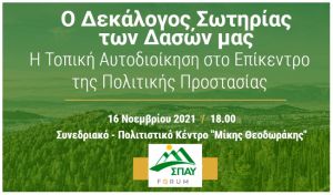 Στις ενέργειες των αρμόδιων υπουργείων και στη συνεργασία τους με την τοπική αυτοδιοίκηση για την προστασία των δασών αναφέρθηκαν μεταξύ άλλων τα κυβερνητικά στελέχη που παρευρέθηκαν στο φόρουμ που διοργάνωσε ο πρόεδρος του ΣΠΑΥ (Σύνδεσμος Προστασίας και Ανάπτυξης Υμηττού) και δήμαρχος Ελληνικού-Αργυρούπολης Γιάννης Κωνσταντάτος με θέμα «Ο Δεκάλογος σωτηρίας των δασών μας – Η Τοπική Αυτοδιοίκηση στο επίκεντρο της Πολιτικής Προστασίας».