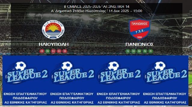 ΣΗΜΕΡΑ, ΚΥΡΙΑΚΗ 14.12.2025 ΚΑΙ ΩΡΑ 03.00 Μ.Μ. Η ΟΜΑΔΑ ΤΗΣ ΗΛΙΟΥΠΟΛΗΣ ΥΠΟΔΕΧΤΗΚΕ ΣΤΑ ΠΛΑΙΣΙΑ ΤΗΣ 14ης ΑΓΩΝΙΣΤΙΚΗΣ ΤΗΣ SUPER LEAGUE 2 ΤΗΝ ΟΜΑΔΑ ΤΟΥ ΠΑΝΙΩΝΙΟΥ