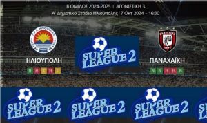 Σήμερα, Δευτέρα 07.10.2024 και ώρα 04.30 μ.μ. η ομάδα της ΗΛΙΟΥΠΟΛΗΣ αντιμετώπισε εντός έδρας, στα πλαίσια της 3ης αγωνιστικής της Super League 2, την ομάδα της ΠΑΝΑΧΑΪΚΗΣ.