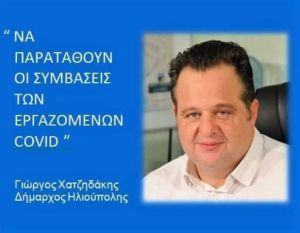 Ως Δήμαρχος Ηλιούπολης, αναγνωρίζοντας την συμβολή των εργαζομένων στην μάχη κατά της πανδημίας, ζητώ από την Κυβέρνηση και τον Υπουργό Εσωτερικών, την άμεση και έγκαιρη παράταση όλων των συμβάσεων «Covid-19» και για όσο διάστημα απαιτείται, ώστε να αντιμετωπιστεί αποτελεσματικά αυτή η υγειονομική κρίση, που απειλεί την κοινωνία, την οικονομία και τις ζωές μας.