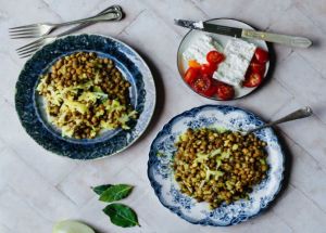 Ένα εξαιρετικά ισορροπημένο πιάτο, μια που η γλυκόξινη γεύση του φρούτου εξισορροπεί τη γήινη, ξηροκαρπάτη γεύση του οσπρίου.