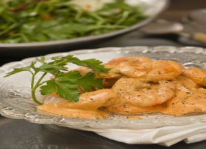 Γαρίδες στο τηγάνι με σάλτσα αρωματισμένη από ούζο και σαφράν να κλέβουν την παράσταση.