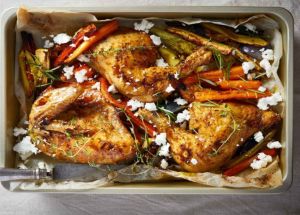 Τραγανό, ζουμερό και μελωμένο κοτόπουλο με λαχανικά. Τα βάζουμε όλα μπλουμ σε ένα ταψί και έτοιμο! Τόσο απλά.