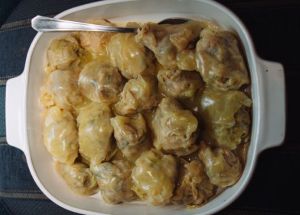 - Βάζουμε το λάχανο σε μια μεγάλη κατσαρόλα με το άνοιγμα προς τα κάτω.