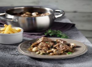 Πεντανόστιμο μοσχάρι, μαλακό και ζουμερό, μαγειρεμένο με μανιτάρια, πικάντικη μουστάρδα, μέλι και κόλιανδρο.