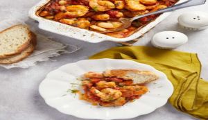 - Ξεφουρνίζουμε για λίγο, τακτοποιούμε τις γαρίδες πάνω στους γίγαντες και ψήνουμε για άλλα 10 λεπτά. Στο τέλος τα φασόλια θα πρέπει να είναι χυλωμένα, αλλά ελαφρά ξεροψημένα από πάνω.