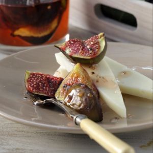 10 μεγάλα σύκα (κατά προτίμηση μαύρα), πλυμένα, σκουπισμένα και κομμένα στα τέσσερα