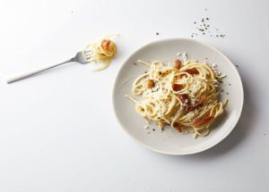 Λιγότερο διάσημη συγγενής της καρμπονάρα αλλά εξίσου λαχταριστή, αυτή η μακαρονάδα, ονόματι σπαγγέτι alla gricia, φτιάχνεται με γκουαντσιάλε, πεκορίνο και φρεσκοτριμμένο πιπέρι.