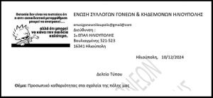 Ζητάμε συνάντηση με τον Δήμο σχετικά με το ζήτημα και καλούμε τους συλλόγους γονέων, τους συλλόγους εκπαιδευτικών πρωτοβάθμιας και δευτεροβάθμιας εκπαίδευσης να συμμετέχουν επίσης, ώστε να εκφραστούν οι ανάγκες όλης της σχολικής κοινότητας.