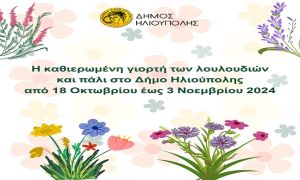 Η καθιερωμένη γιορτή των λουλουδιών που αγάπησαν οι Δημότες και οι κάτοικοι του Δήμου Ηλιούπολης αλλά και όσοι επισκέπτονται την πόλη μας, θα διαρκέσει από τις 18 Οκτωβρίου έως τις 3 Νοεμβρίου 2024 και αποτελεί πλέον θεσμό για την Ηλιούπολη.