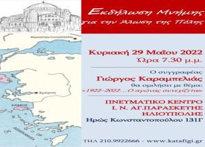 Θα μιλήσει ο Γιώργος Καραμπελιάς με θέμα: "1922-2022… Ο αγώνας συνεχίζεται"