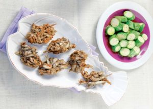- Βάζουμε τους αθερινοκεφτέδες πάνω σε απορροφητικό χαρτί κουζίνας να στραγγίξουν από το λάδι τους.