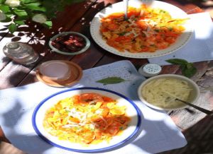 Όταν οι γαρίδες συνάντησαν τις παραδοσιακές χυλοπίτες. Άρωμα ελληνικού καλοκαιριού από τις μπόλικες ντομάτες, τις πιπεριές, τα μυρωδικά και το ούζο.