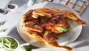 Το κλασικό και αγαπημένο ψητό κοτόπουλο σε μια εκδοχή λίγο διαφορετική: ανοιγμένο «πεταλούδα» και μαριναρισμένο με πάπρικα και σκόρδο. Η πράσινη γιαουρτοσαλάτα είναι το τέλειο συνοδευτικό.