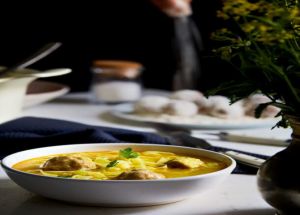 Aπίθανα γιουβαρλάκια κοτόπουλου με κάρι και ρυζομακάρονα με εξωτικό άρωμα, φρέσκο τσίλι και τζίντζερ.