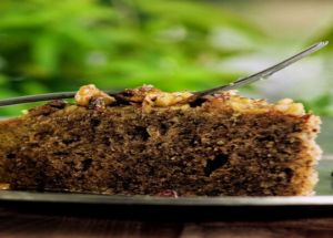 - Στρώνουμε όλη την επιφάνεια ώστε να είναι ισόπαχη, την πασπαλίζουμε με τα χονδροκομμένα καρύδια και ψήνουμε 1 ώρα τουλάχιστον. Δοκιμάζουμε με μαχαίρι για να ελέγξουμε το ψήσιμο.