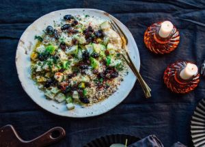 Αυτό το ιδιαίτερο «ταμπουλέ» δεν έχει πλιγούρι αλλά ωμό, τριμμένο κουνουπίδι μαζί με χειμωνιάτικα φρούτα και μπόλικο χυμό λεμονιού.